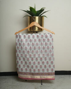 Chanderi Silk Cotton (White pink Pattern)